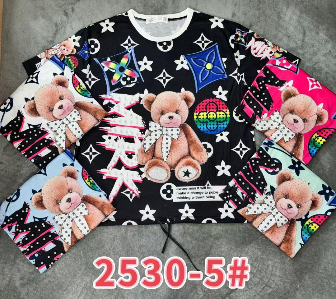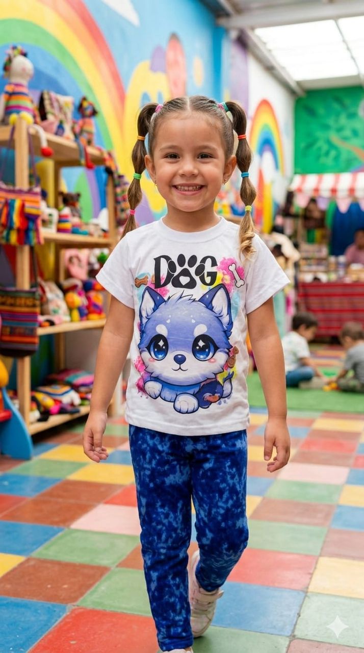 conjunto de niña para el diario en micro durazno, solo disponible en talla 8 a la 12, varia el color del monito, mas de 20 estampados diferentes